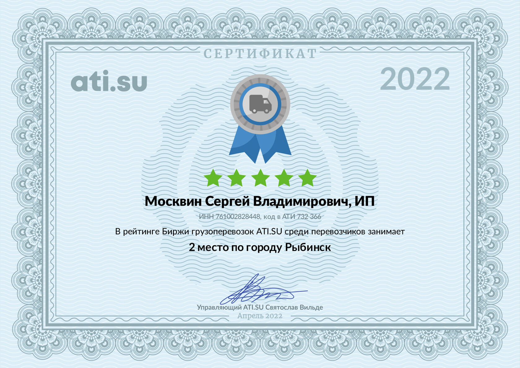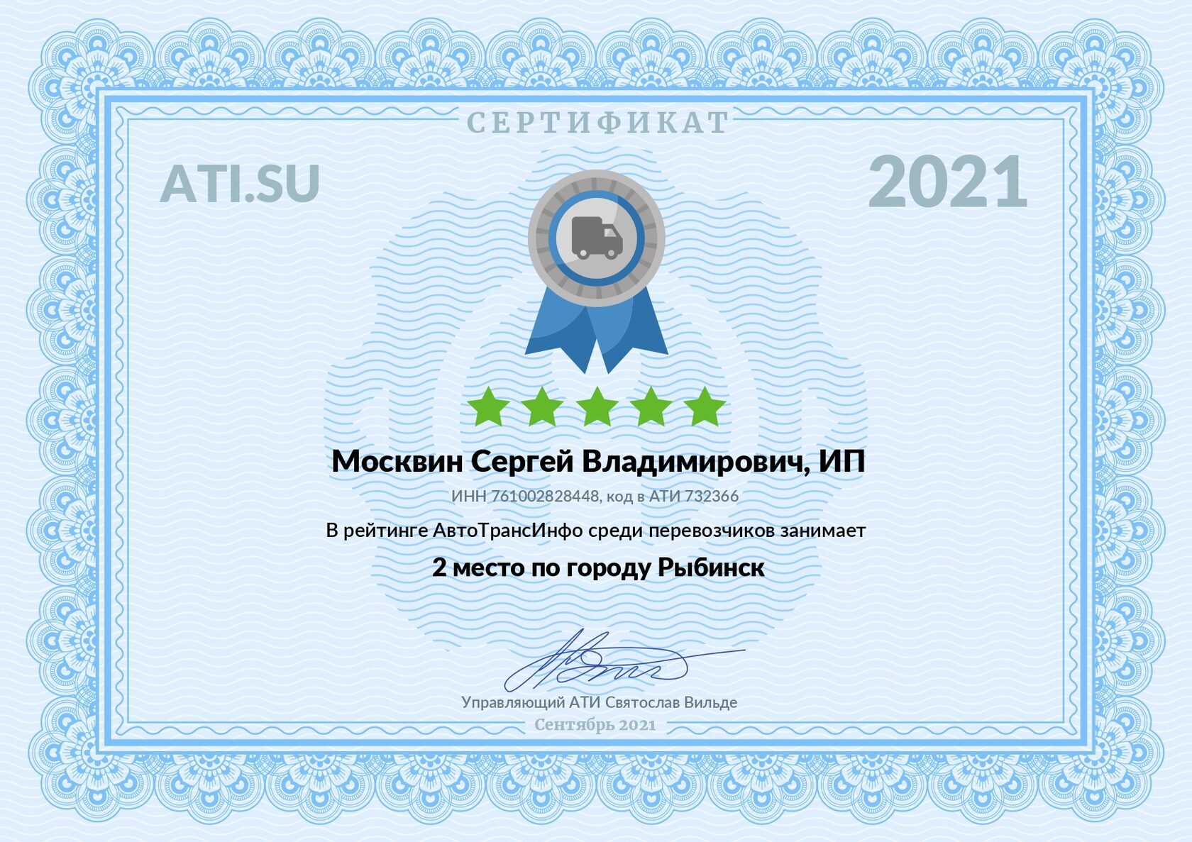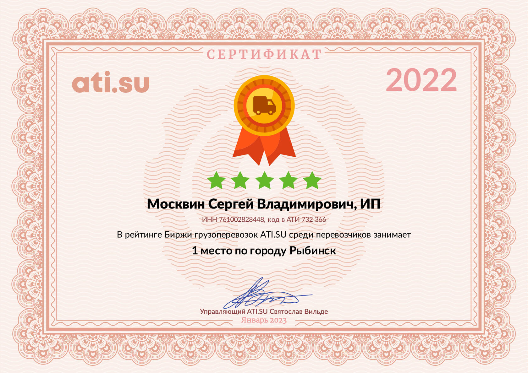 ТОП 3 перевозчиков города Рыбинска по рейтингу АТИ,а также в ТОП 100 лучших перевозчиков страны по рейтингу АТИ из 60974